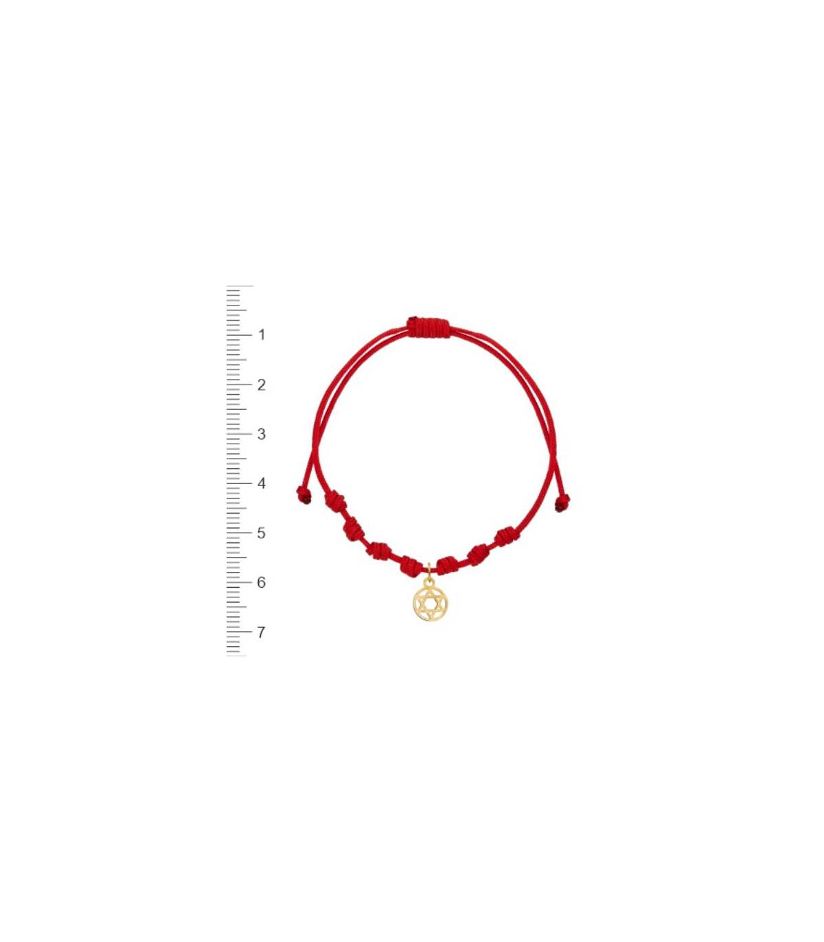 Pulsera de 7 Nudos Hilo Rojo Estrella David Oro 18K