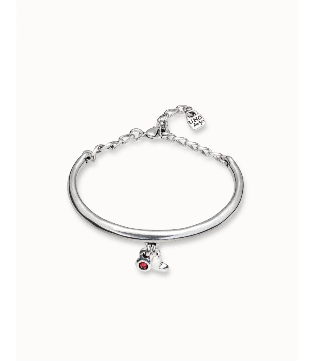 La pulsera Lovekey es un diseño único, protagonizado por un charm con cristal y un corazón. Está confecionada en España siguiendo un proceso completamente manual y utilizando una aleación de metales bañados en plata. Dispone de un cierre de mosquetón que permite adaptar la pulsera a la medida deseada. Combina esta pulsera con el resto de joyas de la colección para crear un look único.