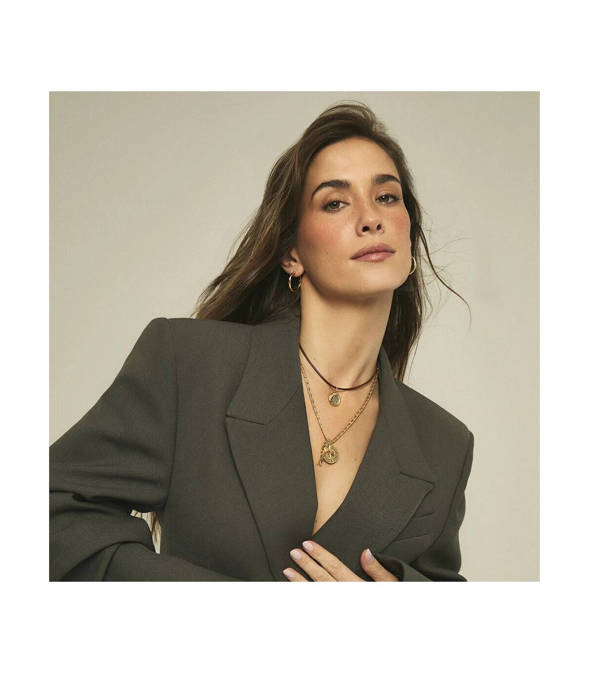 Cordón de cuero marrón con el cierre acabado en oro. Es perfecto para acumular tus amuletos y darles un aire desenfadado y perfecto para el día a día. Crea tu collar personalizado con los amuletos de moda de la nueva colección de Maria Pombo X AGATHA.