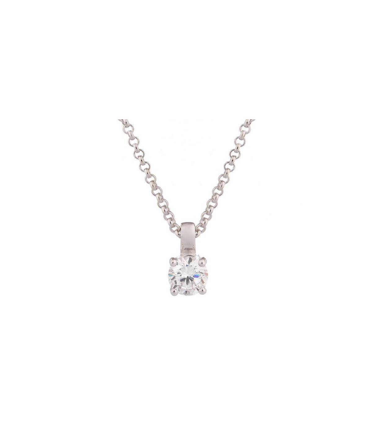 Te presentamos nuestro colgante de plata modelo Kokyo 4 con cadena de plata tipo roló. Colgante de plata de ley, con triple baño de alta protección y brillo compuesto por paladio, platino y rodio o triple baño de rodium de gran resistencia y durabilidad, cuya piedra es una circonita talla brillante de 0,50 y calidad 5A,RS montada en cuatro garras.