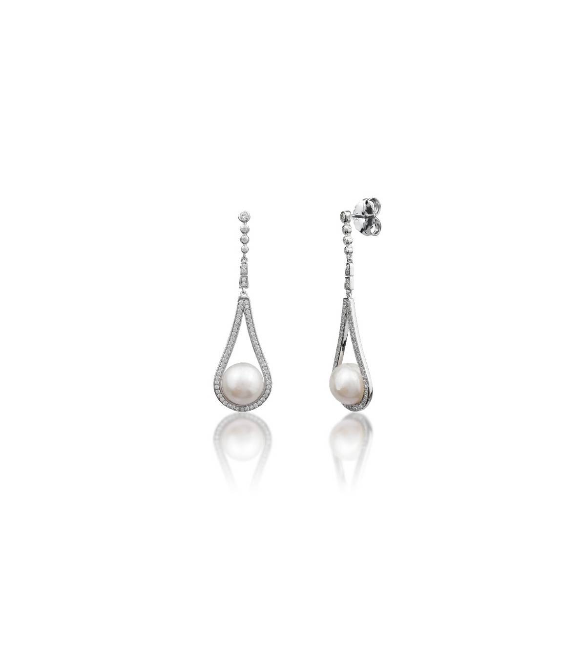 Pendientes de perla de agua dulce y circonitas.