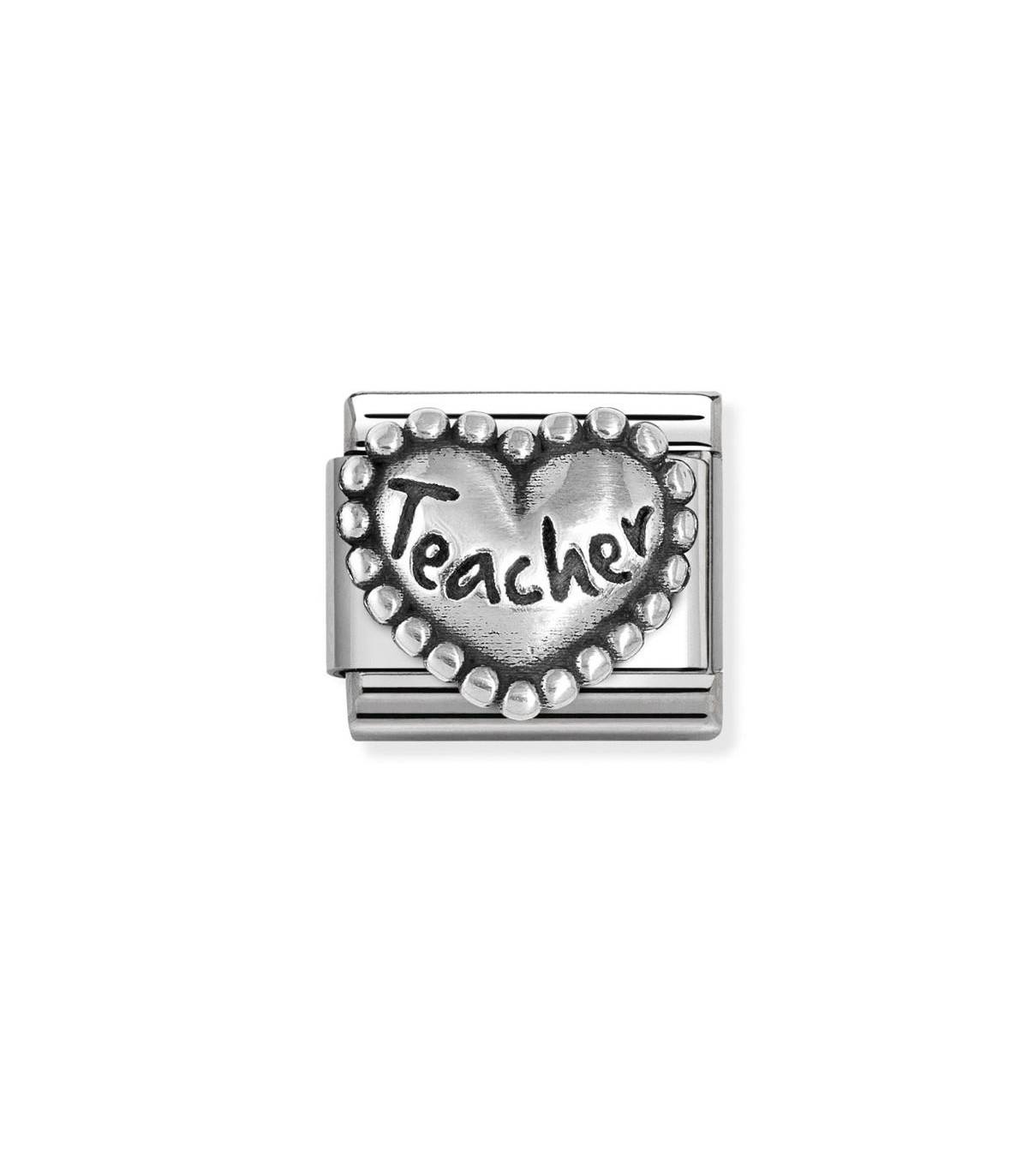 Link Nomination Componsable Corazón Teacher en acero y plata de ley.