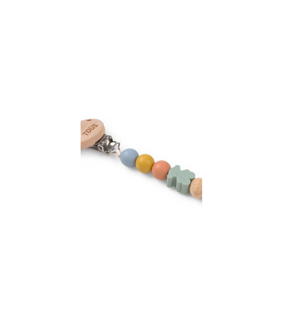 Chupetero Tous Baby con cuentas y osos de suave Silicona y madera de Haya. Diseñado con una combinación de suaves colores; se convertirá en el complemento indispensable durante todos los paseos, quedando la pinza sujeta a la ropa del bebé para evitar la pérdida del chupete. .No tóxico e inodoro. .Cuentas y oso de silicona grado alimentario libre de BPA, PVC, Fatales, Cadmio de plomo. .Cuentas de madera de Haya sin tintes y barnices. .Cordón de Nylon resistente a los hongos. .Clip/broche de metal. .Limpieza con ayuda de un paño. .No compatible con el lavavajillas. .No compatible con el esterilizador. .Recomendamos no usar el chupetero cuando els bebé está en la cuna o en la cama. Color: Único.